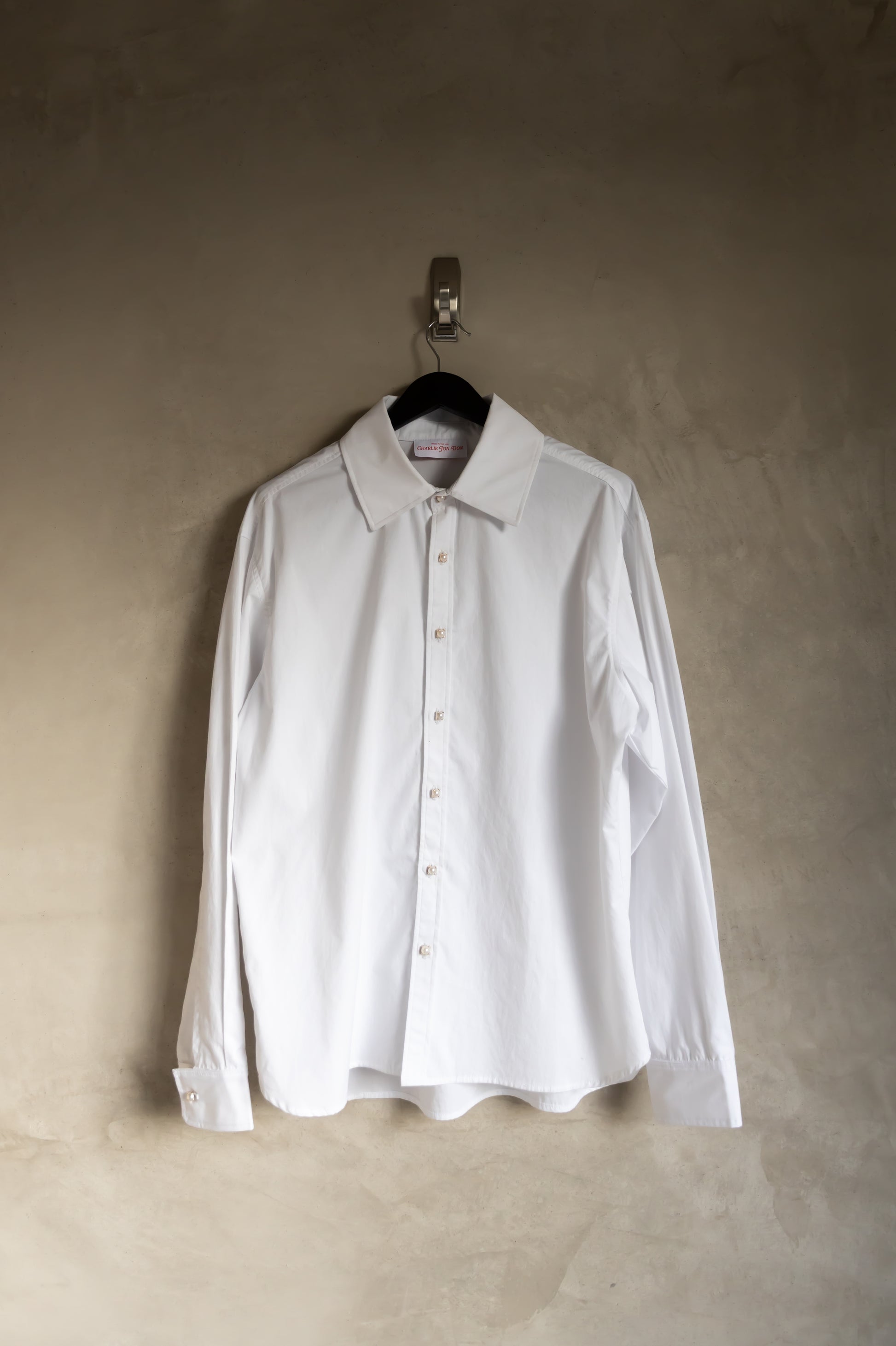 More breathable than its twin counterpart, this classic shirt is made from 3.5oz Broadcloth Cotton. Hand sewn pearl buttons adorn the front placket and wrist cuffs for a less traditional finish.